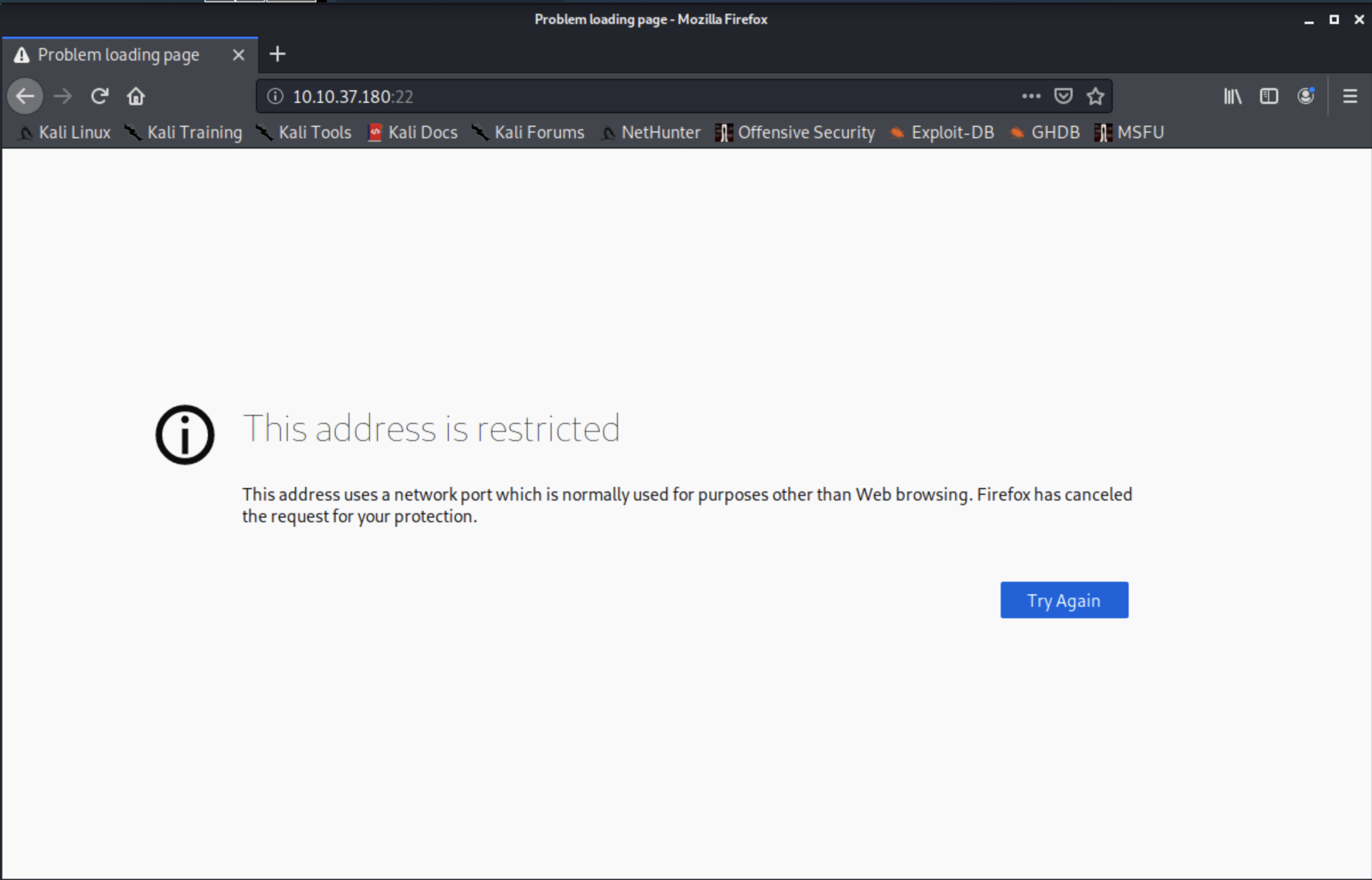 root@kali:~# as we can see we have two ports open SSH on 80 and HTTP on 22, they switched the port numbers for each one, It can be tricky if you don't pay attention. if we try to access the site it informs us that the request is cancelled for security purposes, because the port is used for different things {SSH} not HTTP.